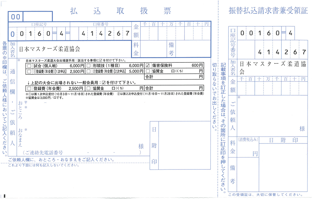 ※下の払込取扱票は今年度(2025年)用として協会会員様宛に送付した見本です。